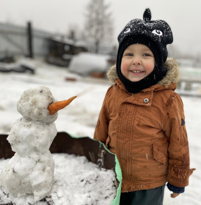 Сегодня, 14 октября, Тынду засыпало снегом. Жители столицы БАМа вышли на улицы и лепят первых снеговиков.