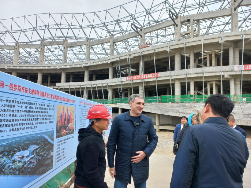 Канатка, как и международный мост через Амур, строится одновременно на двух берегах российскими и китайскими специалистами. До конца 2023 года строители Поднебесной планируют завершить первый этаж. Фундамент будущего здания подняли, чтобы защитить от возможных паводков.