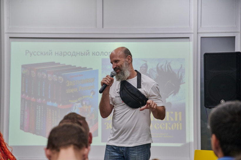 Как появляются книги-доноры, почему не стоит создавать очень положительных героев и насколько выгодно быть писателем сегодня? Известный детский фантаст Дмитрий Емец, автор серии нашумевших книг о «Тане Гроттер» (12+), ответил на самые разные, порой неожиданные вопросы маленьких и не очень благовещенцев. Писателя пригласили в Благовещенск в начале осени в качестве члена жюри девятого международного фестиваля «Детство на Амуре». В последний вечер перед отлетом он встретился с жителями амурской столицы в библиотеке Машука. На встречу собрались и дошколята, и подростки, и взрослые поклонники творчества Дмитрия Александровича. О чем рассказал слушателям популярный российский писатель и почему его растрогал подарок библиотекарей — в материале «Амурской правды».