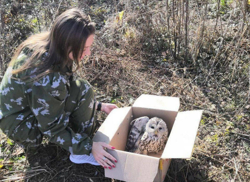 Охотоведы отловили неясыть. Поскольку ран и других повреждений у нее не обнаружилось, птицу временно посадили в темную коробку. А когда неясыть успокоилась и пришла в себя, вывезли в район села Верхнеблаговещенского и выпустили в естественную среду обитания, сообщили в дирекции охраны животного мира и ООПТ Амурской области.