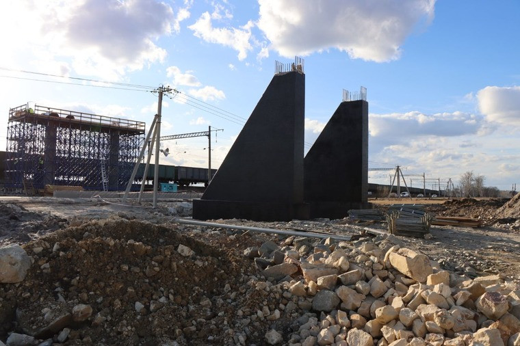 Строители возвели две опоры из четырех нового путепровода в Новобурейском