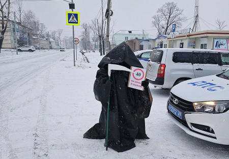 В назидание завитинским автолюбителям и пешеходам госавтоинспекторы и ребята из отрядов юных инспекторов движения создали впечатляющий образ. Смерть в черном плаще напоминала о скоростном режиме, который следует соблюдать водителям, двигаясь по городским улицами и за чертой населенного пункта. Об этом говорили и тематические плакаты с памятками, которые дети и взрослые подготовили для участников дорожного движения.