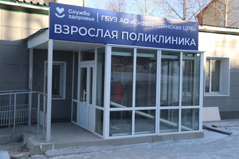 К поликлинике прикреплены более 12 тысяч жителей Сковородинского района, из них более пяти тысяч — дети. Пока в учреждении идет ремонт, пациентов принимают в здании бывшего педиатрического отделения на территории районной больницы. Сейчас основные работы в здании полклиники, которое давно нуждалось в ремонте, завершены.
