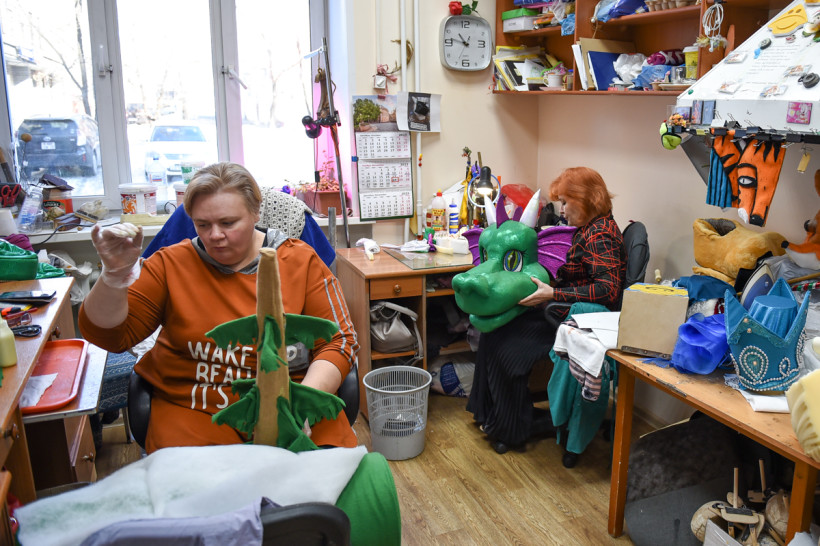 — Были моменты, когда мы шили голову огромного медведя в четыре руки. Ее нужно было привести в порядок в перерыве между спектаклями, за 20 минут, и вдобавок высушить феном. Но мы справились, и даже никто не укололся, — смеются художницы театра, вспоминая рабочие моменты.