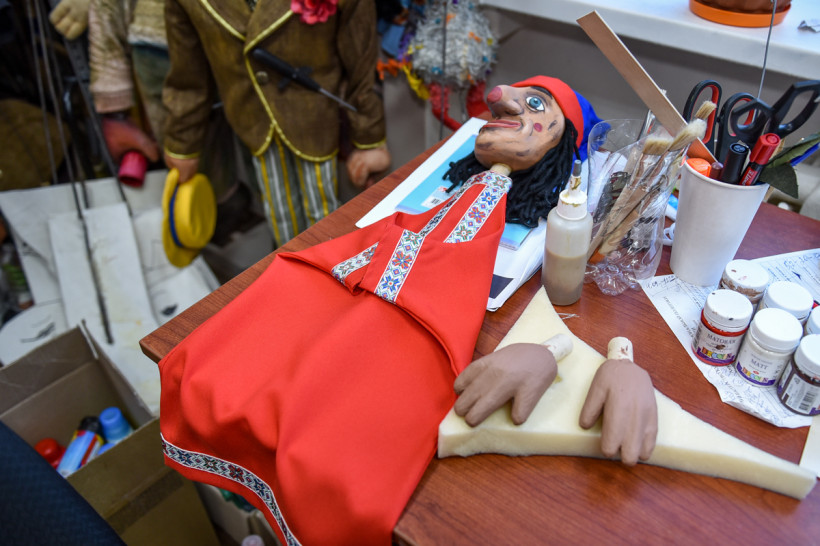 — Создание куклы начинается с эскиза. Потом нам говорят, какая она должна быть, из какого материала, как должны двигаться ее части, а дальше мы воплощаем задумки художников в жизнь, — объясняет процесс создания театральных кукол художник-бутафор областного театра кукол Ольга Наволочкина. — Разрабатываем технологию и начинаем работать. Мы можем сделать кукол из какого угодно материала: поролона, пенопласта, папье-маше.