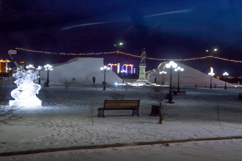 По словам Олега Имамеева, мастера работают по созданию снежного городка в ускоренном режиме. Горки на площади практически готовы, основной акцент сейчас на возведении трех больших горок на набережной в районе детской площадки. Одна горка в виде ракеты «Ангара» будет двускатной. Две другие расположены вдоль Амура — традиционные с одним скатом.