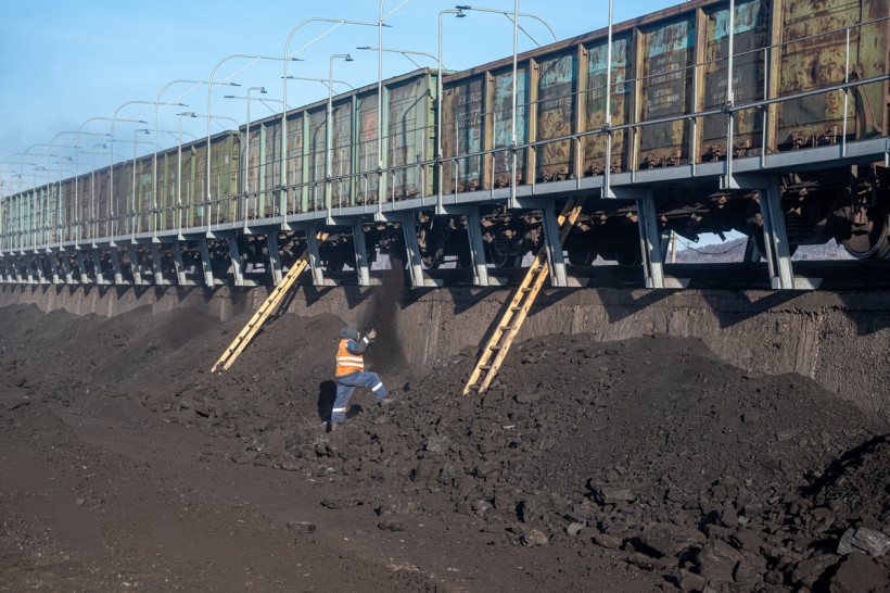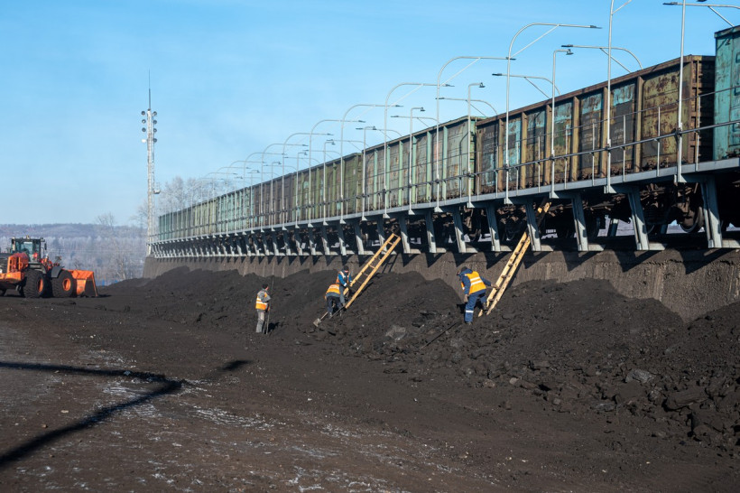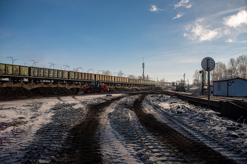 — Составы начинают подвозить с 8 утра. У нас техническая возможность постановки на эстакаду — 10 вагонов за раз. Перед этим их осматривают на предмет исправности и выступающих элементов, чтобы не повредить на эстакаде трапные металлоконструкции. После установки противооткатных башмаков грузчики открывают люки и приступают к работе. Сейчас вот производится зачистка полувагонов с углем. Грузчики попадают в них с помощью лестниц. У нас также есть погрузчик, который рыхлит слежавшийся, смерзшийся уголь — для облегчения труда, — показывает Юрий Захаров на проезжающую вдоль вагонов желтую машину.