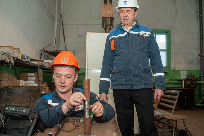 Трубам на Райчихинской ГРЭС регулярно делают УЗИ. Ультразвуковое исследование металла необходимо, в частности, для определения состояния сварочных швов. Здесь всё как в больнице: перед осмотром на поверхность металла наносят специальную контактную смазку для проведения исследования. Дефектоскопист по магнитному и ультразвуковому контролю Александр Вахрушев подключает датчик и начинает осмотр. «УЗИ показывает поры и провары в корне шва: мы видим, есть ли скопление пор, дежурные дефекты, какие-то трещины. Также с помощью прибора можно определить наличие шлаковых включений», — объясняет специалист. Ведущий инженер лаборатории металлов и сварки Виталий Литвиненко мастерски владеет методом ультразвукового контроля металла, но перед исследованием проверил трубу и на глаз.