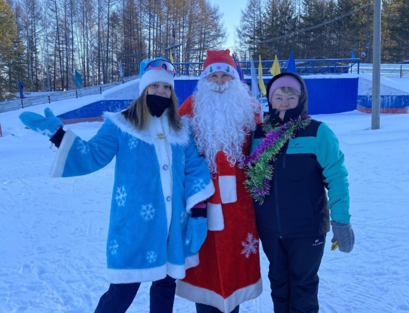 В Тынде сноубордисты и лыжники в новогодних костюмах прокатились по спуску «Усть-Корал»