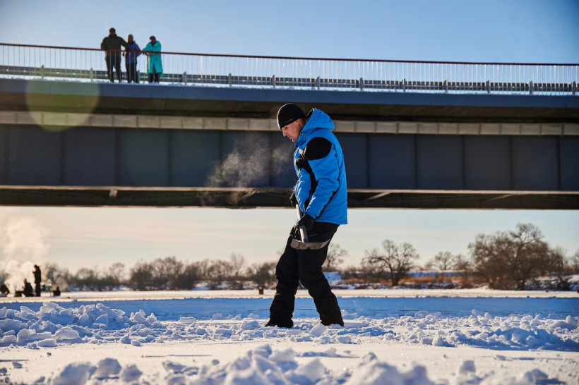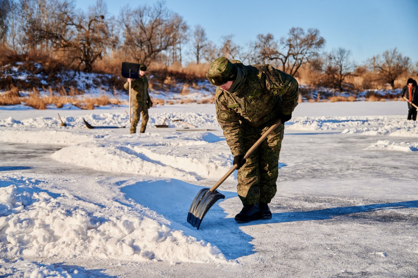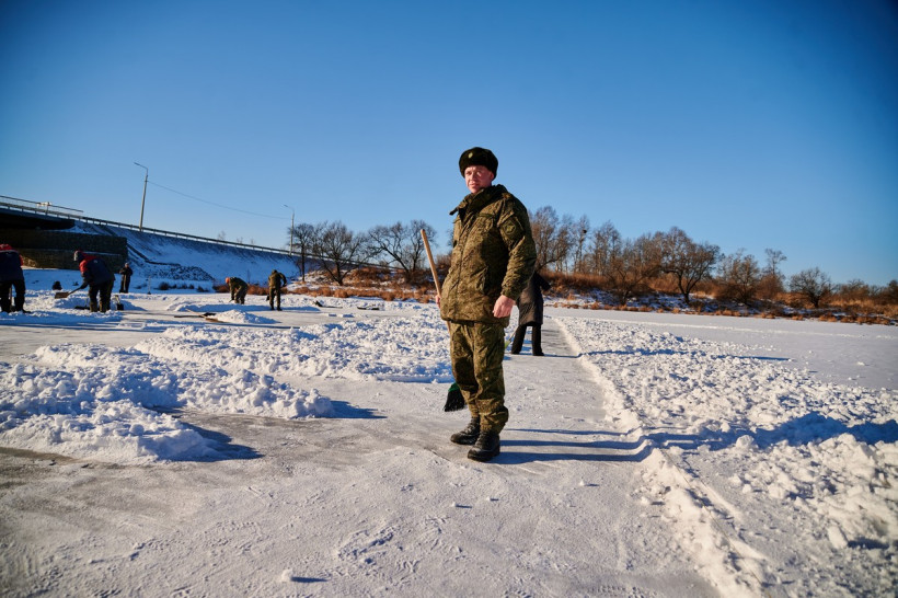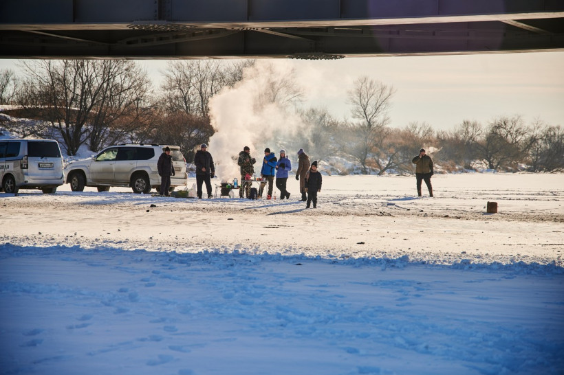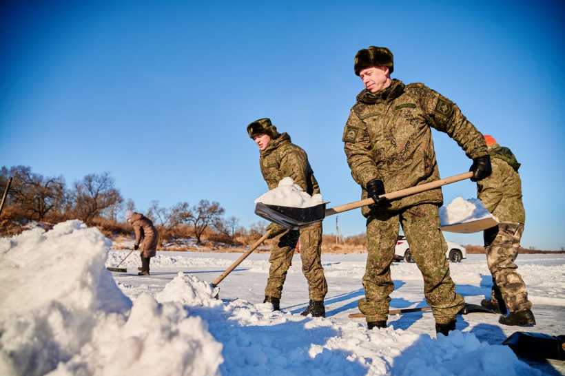 В назначенное утро у Хомутины остановился военный «Урал», из будки которого шел густой дым. Чтобы команда «Амурской правды» и ее помощников не замерзла, руководитель ДВОКУ, генерал-майор Валерий Шарагов направил нам спецтранспорт и бравых курсантов в помощь. Рассказывать руководству военного вуза о том, что будет происходить на льду, не пришлось — нашу историю знают все. И спешат на помощь. Огромное спасибо!