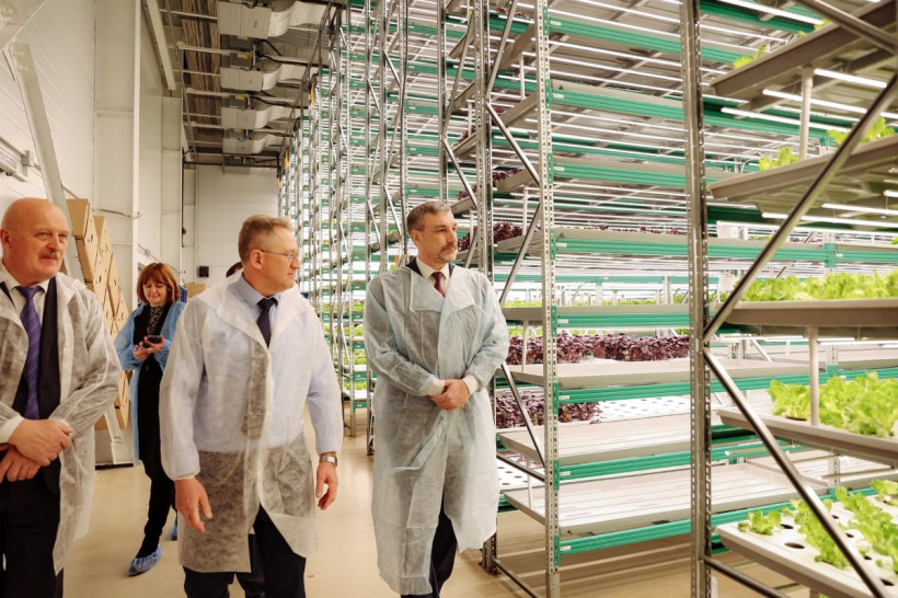 Глава Приамурья осмотрел теплицы, а также побывал на одном из действующих участков комбината — современной вертикальной ферме, где выращивают различные виды зелени и салаты. Она занимает всего 260 квадратных метров и при этом позволяет выращивать 54 тонны салатов и зелени в год.