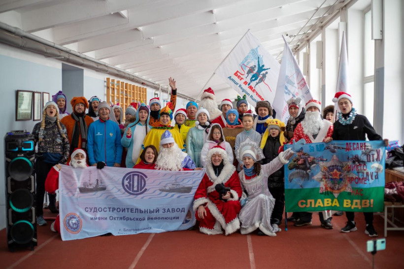 Горожане и гости Благовещенска могли заметить на набережной реки Амур в районе Триумфальной арки и в других местах Дедов Морозов, Снегурочек, единорогов, тигра, леопарда, Петрушку и других сказочных персонажей. После морозной пробежки легкоатлеты устроили массовый хоровод возле главной елки областного центра — на площади Ленина. К ним присоединились дети и взрослые.