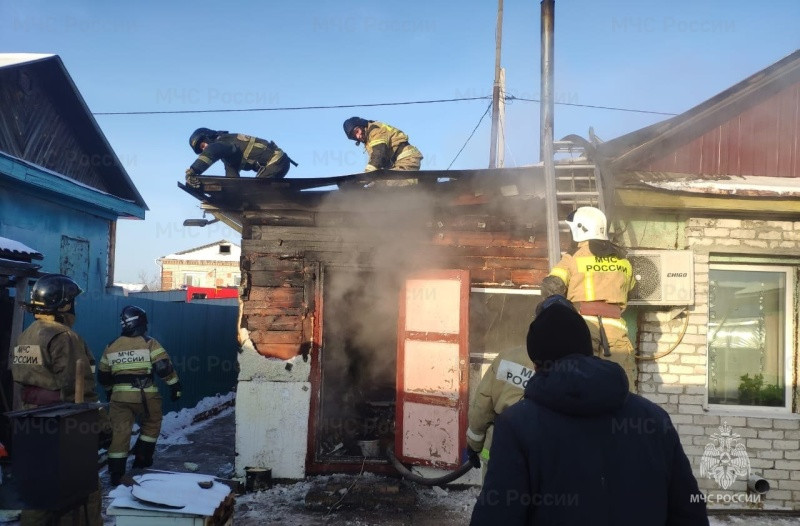 Пожарные в Благовещенске тушили пожар в гараже, который находился рядом с частным домом. Предварительная причина возникновения огня — авария на электросетях.