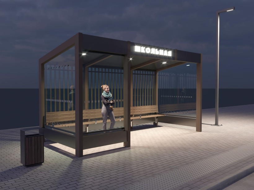 Дизайн-проекты автобусных остановок с освещением разрабатывался АНО «Центр развития территорий». Одной из важнейших задач было создать комфортные и безопасные остановочные пункты для детей. Также акцент делался на современность используемых материалов и технологий.