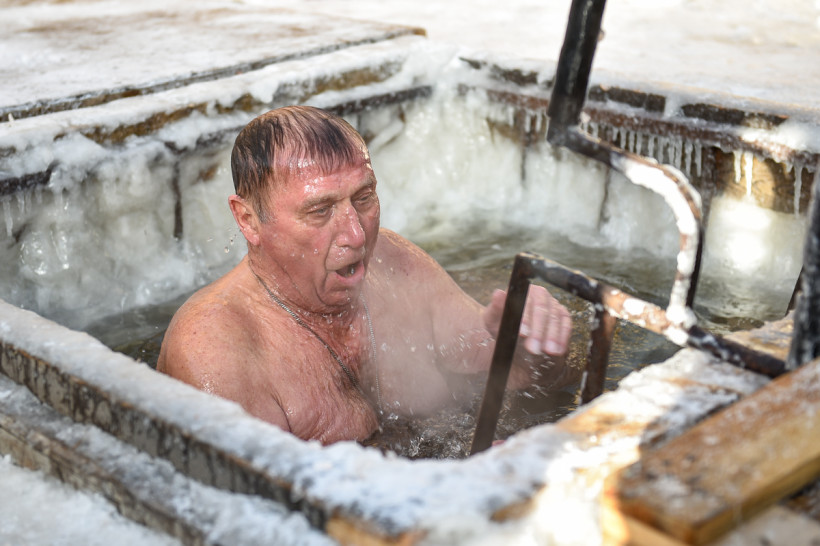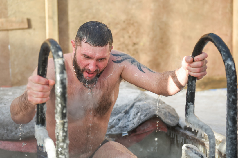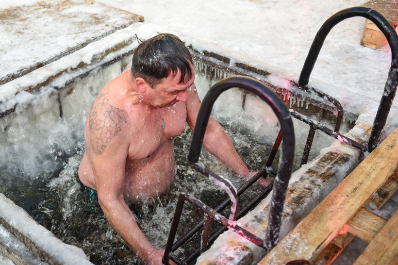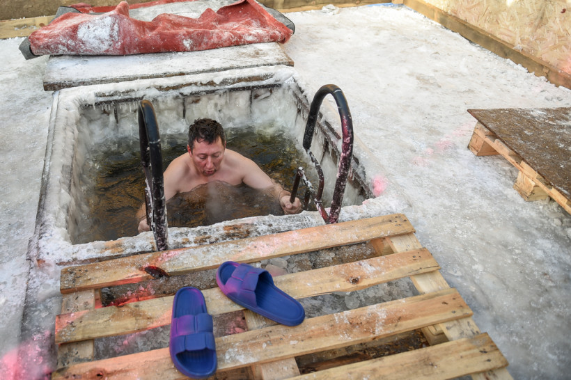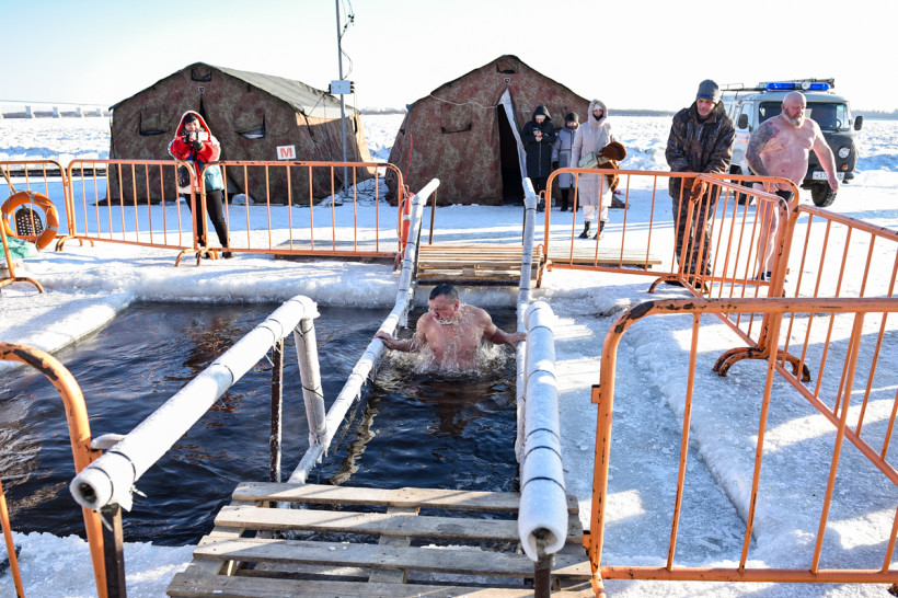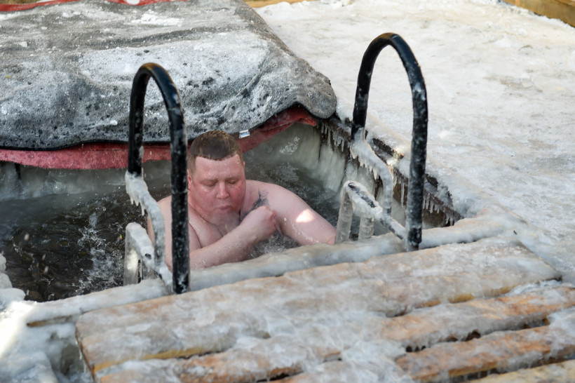 Наверное, самыми отважными сегодня стали те, кто решился окунуться в прорубь на открытом воздухе. Здесь греет лишь внутреннее чувство победы над своими страхами.