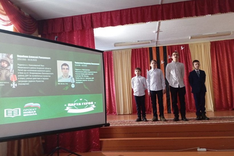 Первые парты Героев появились в Амурской области в декабре 2022 года. Их установили в благовещенской школе № 16 в честь памяти Героев России Константина Двинина и Марка Парыгина. Офицеры погибли при исполнении боевых задач в зоне СВО и награждены орденом Мужества посмертно. А уже 1 февраля ко Всероссийскому образовательному проекту присоединился лицей № 6 города Благовещенска. Здесь появилась парта Памяти офицеров Константина Логинова и Антона Якименко, окончивших это образовательное заведение. Ученический стол установили в музее «Страницы истории лицея», где для ребят также проводятся уроки.