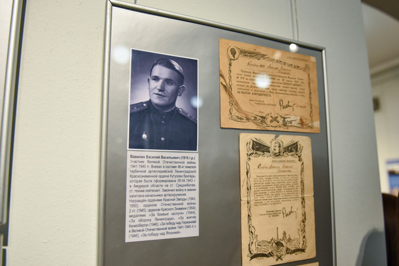Открыла выставку зампред правительства региона — министр образования и науки Амурской области Светлана Яковлева. Она напомнила присутствующим, что нация сильна своей памятью. И именно свидетельства войны тех лет не дают забывать о том, кому мы обязаны жизнью.