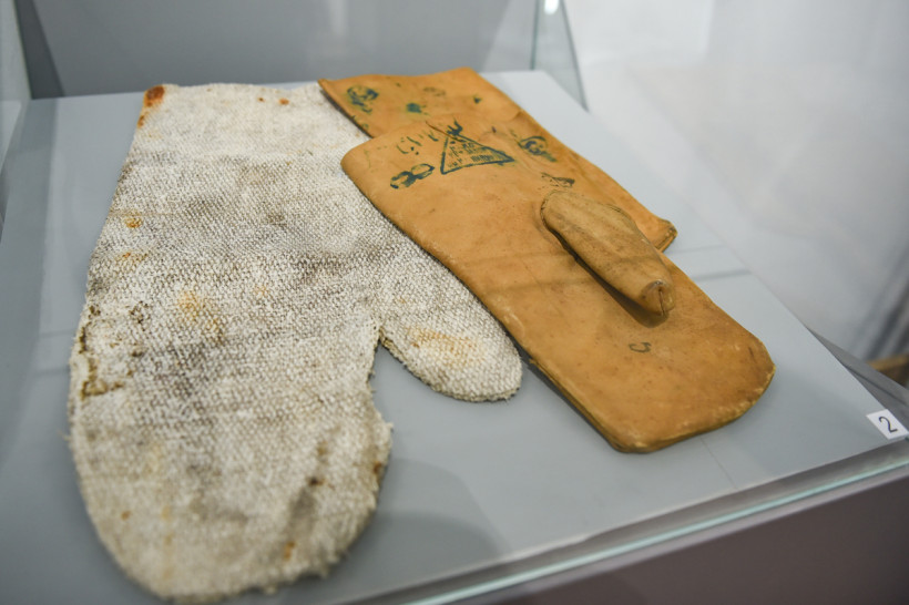 Еще один экспонат — ремень из сыромятной кожи. По воспоминаниям жителей, именно такой считался наиболее вкусным: он был без красителей и более мягким, чем другие кожаные ремни. Его разрезали на куски, замачивали на несколько суток, затем варили, пропускали через мясорубку и делали котлеты.