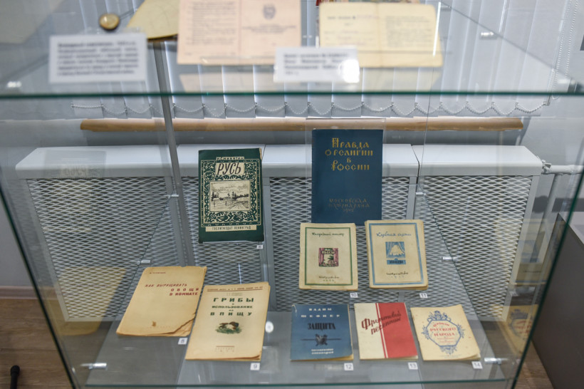 Представлены на выставке книги, пережившие блокаду, а также издания, которые выпускались непосредственно в осажденном городе. Книги тоже помогали людям: сборники стихов поднимали боевой дух, а другие издания в буквальном смысле учили выживать. Например, брошюры «Как выращивать овощи в комнате», «Грибы и использование их в пищу».