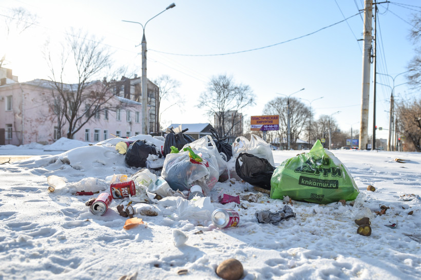 Пакеты вдоль дороги: благовещенцы сфотографировали мусор в центре города