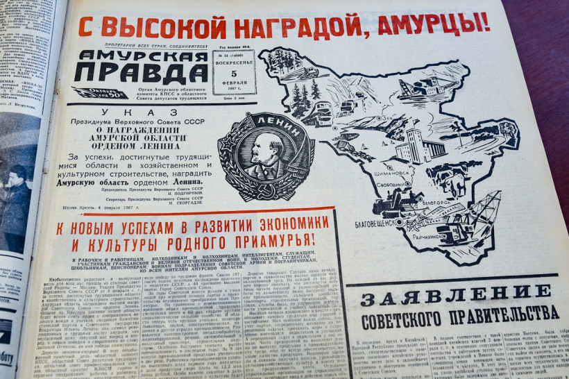 «Большая радость пришла на амурскую землю: Президиум Верховного Совета СССР за успехи, достигнутые трудящимися в области в хозяйственном и культурном строительстве наградил нашу область орденом Ленина, — писала «Амурская правда» 7 февраля 1967 года. — Эту весть принесло московское радио вечером 4 февраля. Окрыленные ею амурцы поздравляли друг друга с высокой правительственной наградой, желали новых успехов, благодарили партию и правительство за высокую оценку их труда. Сердце каждого из нас наполнилось чувством гордости за любимую Родину, за родное Приамурье, которые мы любим, которое украшаем садами развитию экономики которого отдаем все свои силы, энергию, знания, жар души.