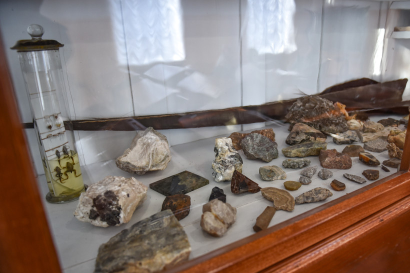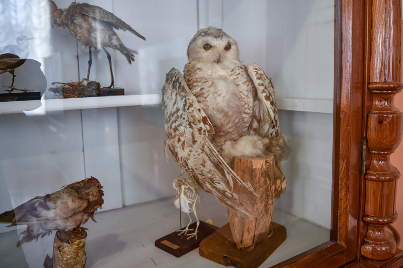 — Лиса, заяц, аист, цапля, разновидности птиц, коллекция бабочек, — перечисляет директор. — Единственное — убрали чучело тюленя, оно стало просто сыпаться. Все экспонаты до сих пор используются на уроках биологии.