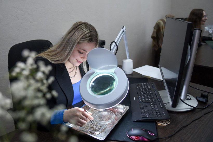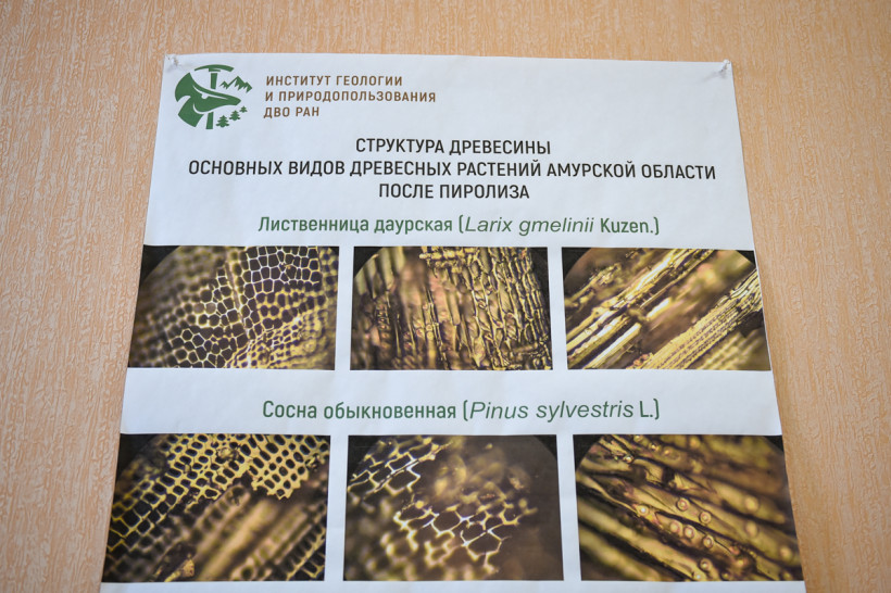В небольшом кабинете, увешанном фотографиями углей деревьев, сгоревших в Амурской области тысячи лет назад, тишина. Здесь работают две женщины: одна, не отрываясь, рассматривает что-то в мощный микроскоп, вторая — под огромной лупой из горстки минералов отбирает угольки. Это ж надо умудриться еще подхватить щипчиками черные камушки размером с мелкий бисер!
