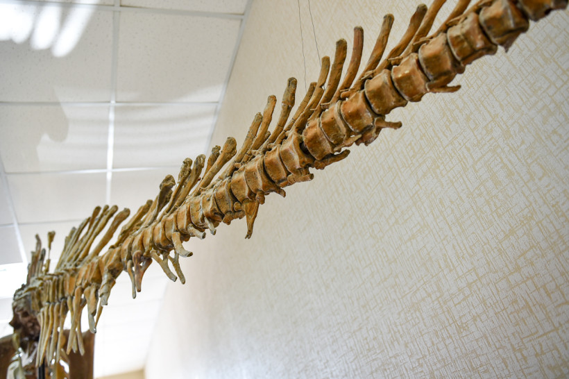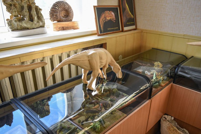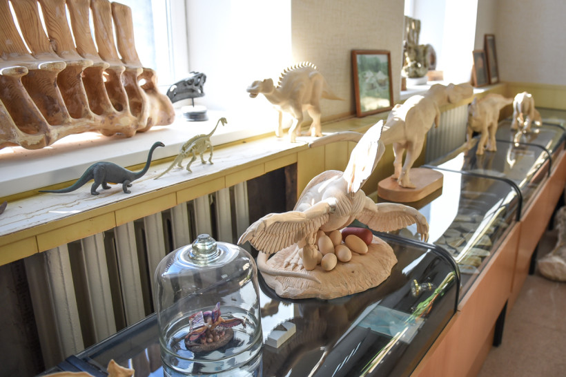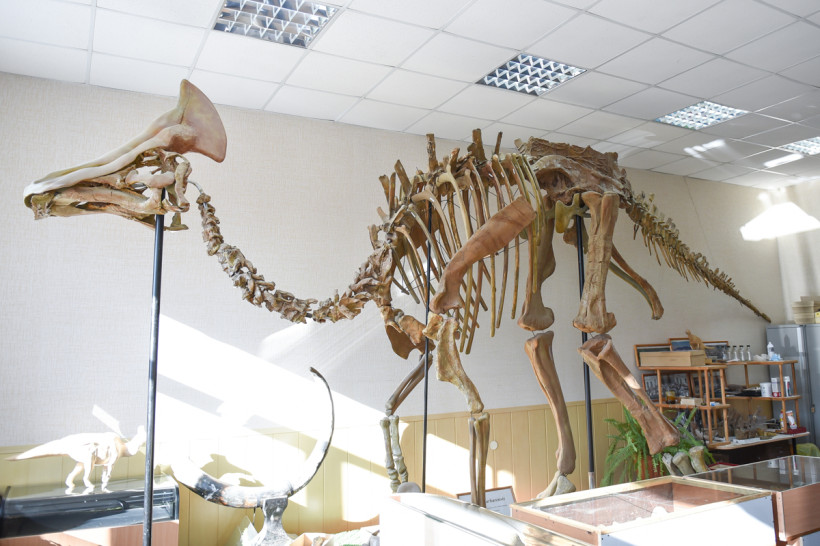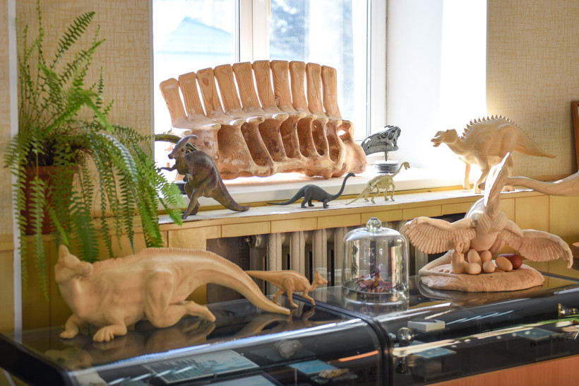 Здесь повсюду витрины и коробки с костями динозавров, а у входа практически подпирает потолок исполинская копия скелета олоротитана Ванюши, названного в честь Ивана Болотского, который обнаружил его на кундурском местонахождении. К слову, палеонтолог и его тезка из мелового периода, который жил 60—70 миллионов лет назад, даже чем-то похожи: статный ученый и сам как титан — выше всех гостей и коллег в лаборатории.