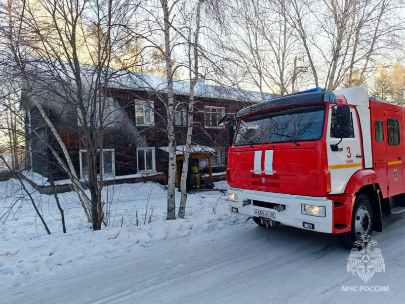 В Амурской области пожарные МЧС России вынесли из огня двух маленьких детей. Пожар случился 10 февраля в двухэтажном деревянном доме в Тынде.
