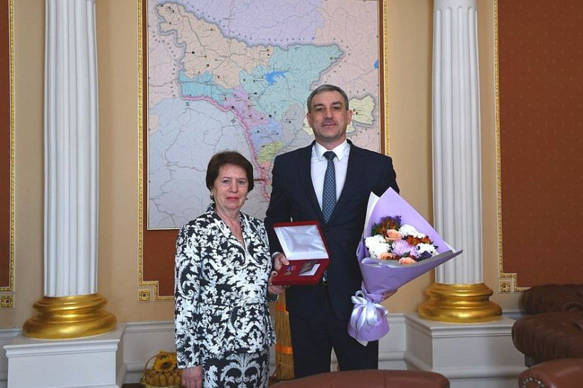 Василий Орлов наградил гендиректора Благовещенского молочного комбината Надежду Ивановну Анищенко медалью «За заслуги перед Амурской областью». «Для меня честь вручить эту награду Надежде Ивановне, которая, кстати, вчера отметила свой юбилей», — пишет в телеграм-канале губернатор.