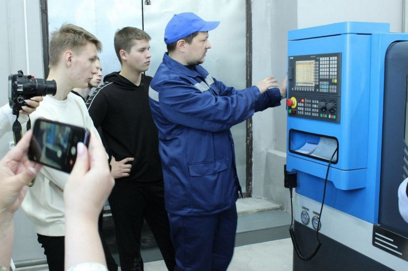 — Техника с числовым программным управлением позволяет минимизировать ручной труд в процессе изготовления деталей. От специалиста потребуется только оформление чертежа, внесение параметров в программу станка и загрузка заготовки в специальный отсек, — рассказал мастер производственного обучения техникума Анатолий Опенышев