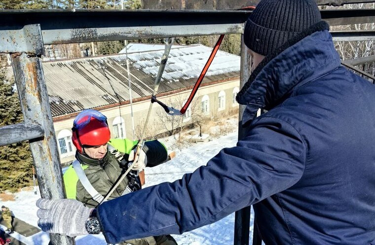 Сборы для парашютно-десантной службы авиабазы проходят в Свободном. Сначала авиапожарные сдают зачеты и экзамены, а потом подтверждают свои знания и умения на практике: при помощи спускового устройства они спускаются сначала с десятиметровой вышки, а затем с вертолета.