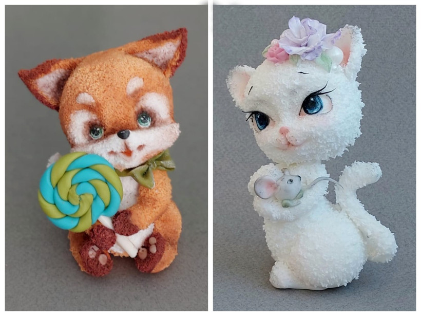 На изготовление более простых фигур — мишек, зайчиков, котят — у мастера уходит несколько дней. А вот на композиции, предназначенные для конкурсов, — с обилием элементов и разной фактурой поверхности — времени тратится намного больше, бывает, что несколько недель. Ведь надо не только вылепить, применив различные технологии, но придумать и продумать общую концепцию и каждую деталь.