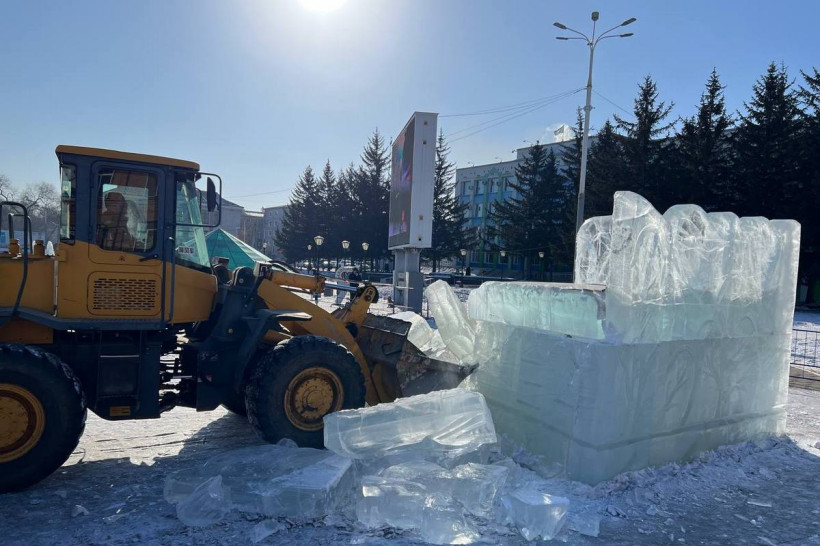 Еще один амурский город готовится к встрече весны. В понедельник, 26 февраля, на площади 30-летия Победы в Белогорске демонтировали ледовый городок. Снежные фигуры и горки жители увидят только следующей зимой.