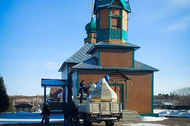 Новые купола для амурского храма доставили в Игнатьево из Челябинской области