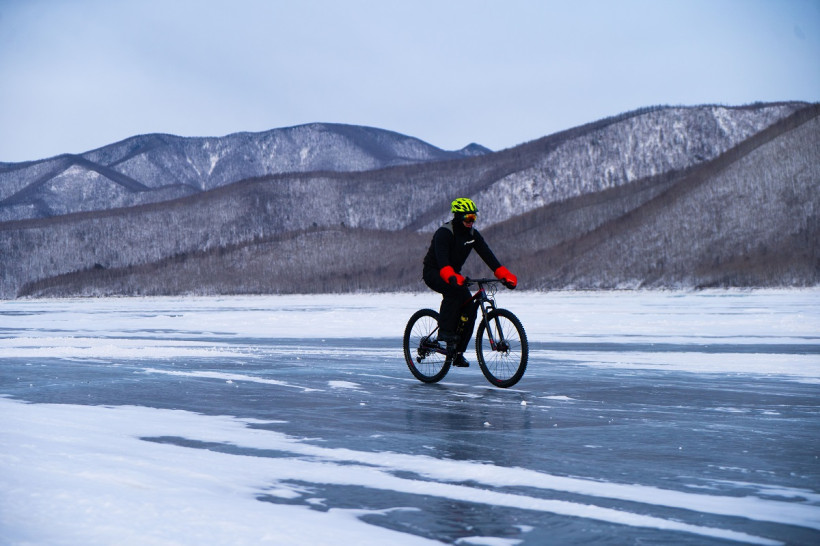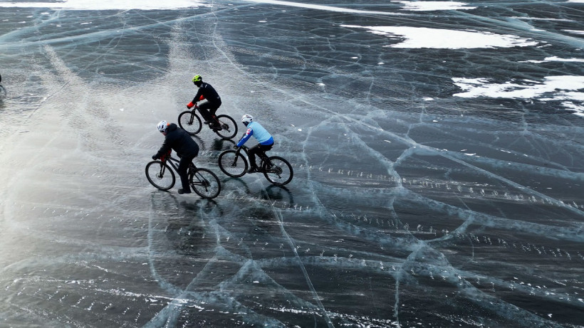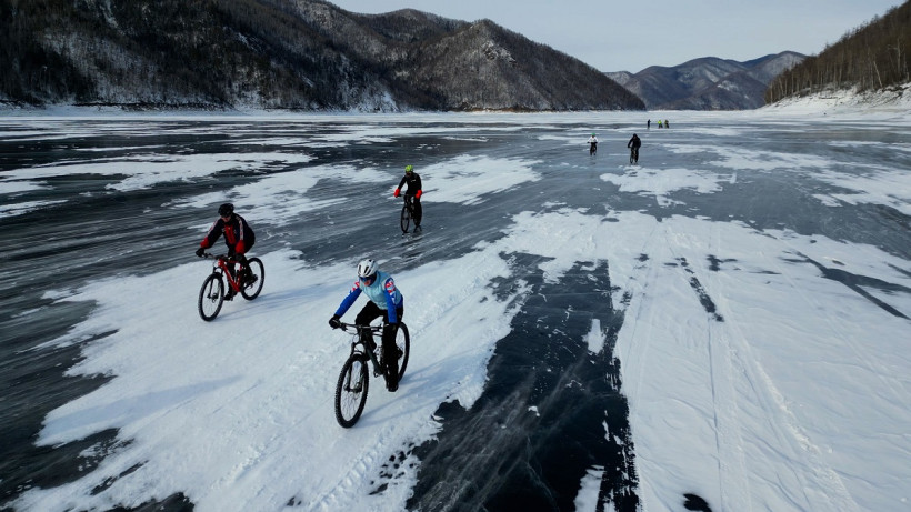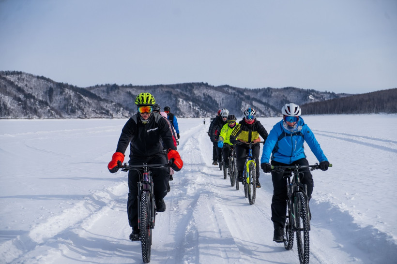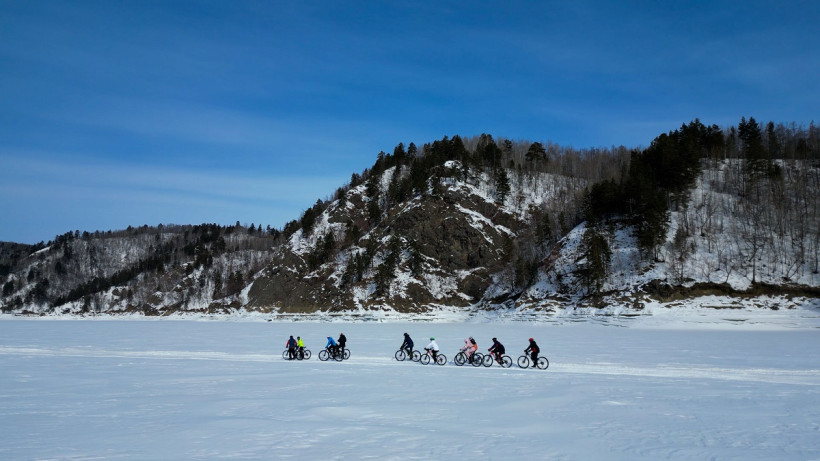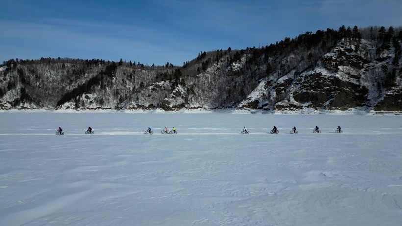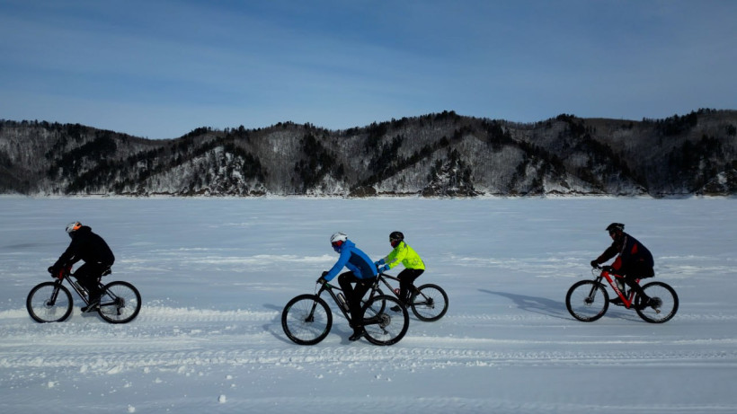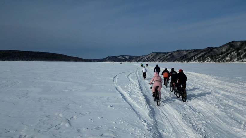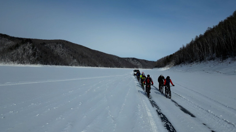 Испытание льдом: амурские велосипедисты преодолели 75 километров по Зейскому водохранилищу (фото)