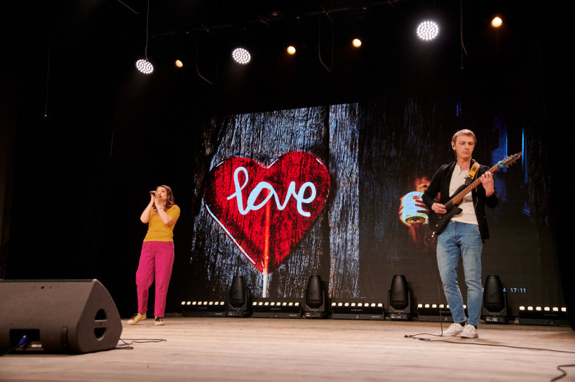 Нутрициолог и астролог, мастер маникюра и обворожительная мама двух ребятишек Надежда Давыдова вместе с мужем Романом исполнили романтичную песню. Причем на гитаре аккомпанировал сам Роман.