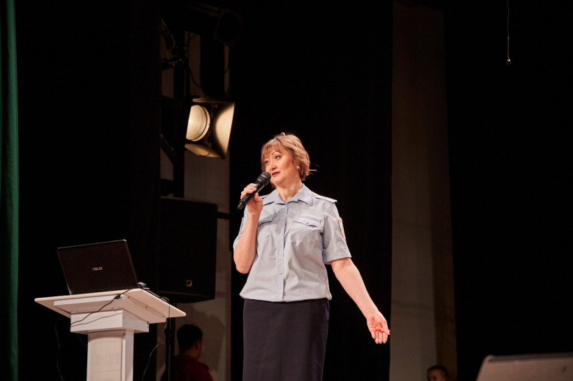 Например, конкурсантка под номером два Оксана Чекулаева, помощник судьи городского суда Свободного, бывший сотрудник полиции, 17 лет проработавшая в органах дознания, из восхитительного бального платья переоделась в зеленый костюм и панамку, чтобы показать, как они семьей отдыхают на природе.