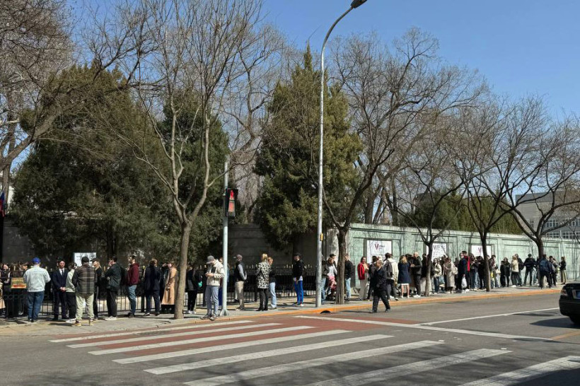 В Пекине очередь на голосование в посольстве за президента России двигалась быстро. Фото: Ольга Батурина