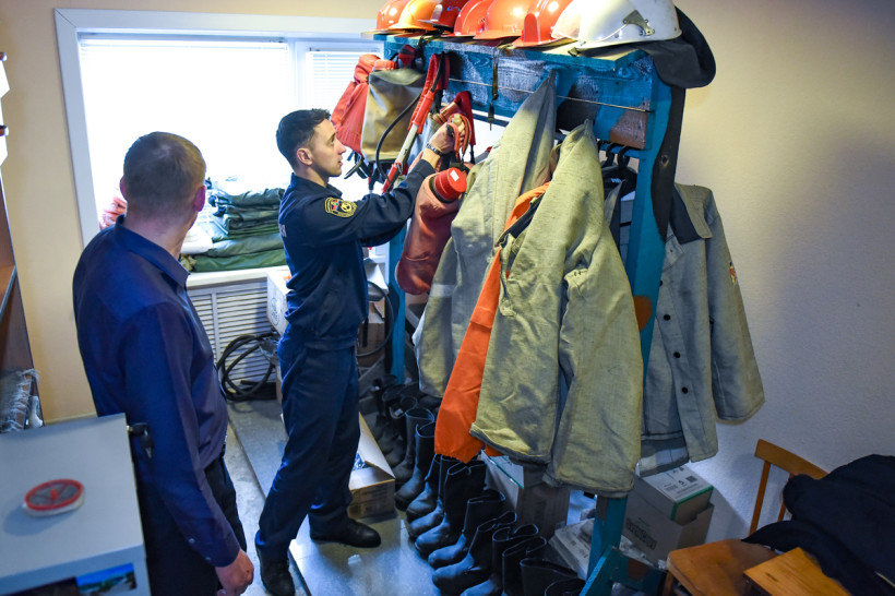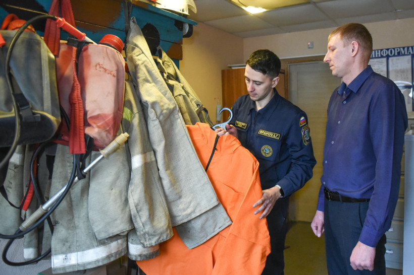 Оказалось, что в защитный костюм облачиться не так-то и просто. Ведь очень важно, чтобы одежда максимально защищала тело от возможных ожогов. И если дружинники экипировались за считанные секунды, то неподготовленному человеку дружно помогали отважные огнеборцы пожарной части Новобурейского, попутно объясняя, что и для чего необходимо. Комбинезон, куртка на липучках, балаклава, а затем надежно зафиксированная каска и, конечно же, защитные перчатки — краги, кажущиеся такими огромными, но, как показала практика, крайне необходимые.