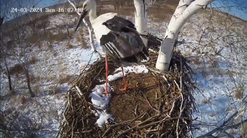 — Вернулся хозяин гнезда. Прилетел сегодня в 16:07 и сразу начал порядки в гнезде наводить. Шестой сезон наблюдения за гнездовой жизнью дальневосточных аистов объявляем открытым, — пишет Антон Сасин в телеграм-канале.