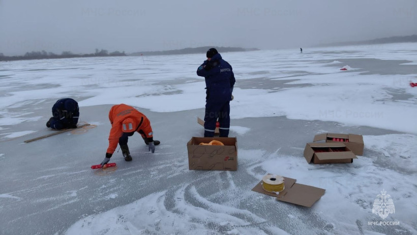 На Амуре в районе села Черняево Магдагачинского района спасатели подрывают лед в местах вероятного образования затора. Всего в регионе на реках Амур и Уркан пять таких участков.