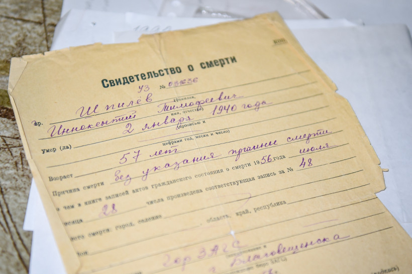 — Бабушка мне говорила, что почему‑то баржа пошла ко дну. И это случилось где‑то на слиянии Амура и Зеи. Может быть, это неточно. Но я так запомнила. Вот еще какой интересный факт. Когда сама Варвара Ивановна — мать моего деда, понесла мужу передачу, то пропала. И вернулась домой она только через одиннадцать лет! — от рассказа Ларисы Рудольфовны даже холодок по коже пошел. — Варю Шпилеву схватили и как жену политзаключенного отправили на каторгу. Дома остались дети малые — дед мой и его сестра Агния. Прабабушку отправили куда‑то в Казахстан. На каком‑то этапе ей, скажем так, повезло. Поскольку Варвара Ивановна готовила очень хорошо, начальник лагеря взял ее к себе домработницей. Потом, видимо, пожалел и отпустил. Позже прабабушке отдали свидетельство о смерти на мужа Иннокентия Тимофеевича, но без указания причин гибели.