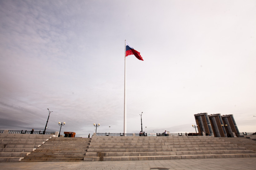 ГСТК спустил флаг России с флагштока на набережной Благовещенска. Это связано с сильными порывами ветра, которые ожидаются в столице Приамурья.