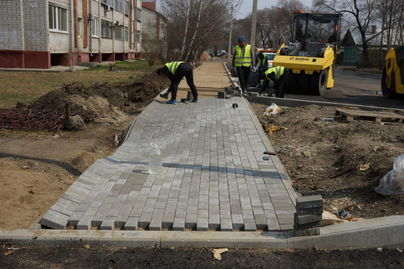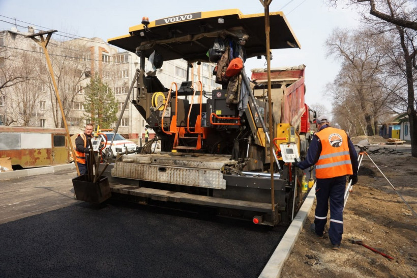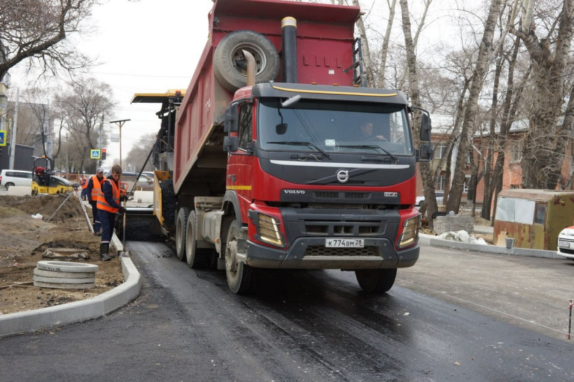 На улице Тенистой в Благовещенске началась укладка асфальта