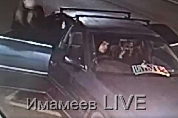 Водитель, на машине которого есть надпись «Пять утра», подвез двух девушек к остановке возле вуза, высадил, а потом достал оружие — предполагается, что пневматический пистолет — и выстрелил в стекло павильона.