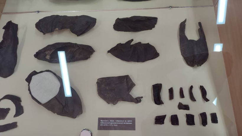 – Очень важны находки нательных крестов, которые мы находим в погребениях. Это всегда очень драматический момент, потому что ты понимаешь меру и значимость тех исторических событий. В экспозиции есть один из крестов, который разломан. Видно, что это произошло от сильного удара, возможно, это была вражеская пуля, и крест спас жизнь, приняв удар на себя. Очень много находим маньчжурских стрел, которые прилетели на Албазинский острог. Некоторые обёрнуты берестой. Такие стрелы поджигались, и ими велся обстрел. Именно такие стрелы в 1685 году и сожгли деревянный острог в Албазине. Находим пули, ядра. Представлены в экспозиции предметы из кожи — обувь первопоселенцев, в том числе и погребальная обувь. И это очень ценные находки, потому что предметы из органики, как правило, не сохраняются. В погребении женщины мы нашли бронзовый наперсток. Видимо, это был самый ценный предмет, поэтому человека с ним похоронили, — продолжает Андрей Николаевич.