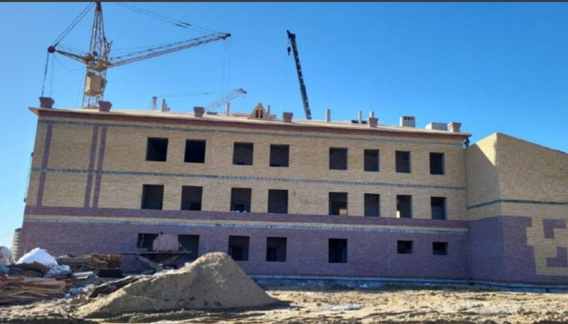 Строители выкладывают фронтоны и проводят коммуникации в новой школе в Чигирях