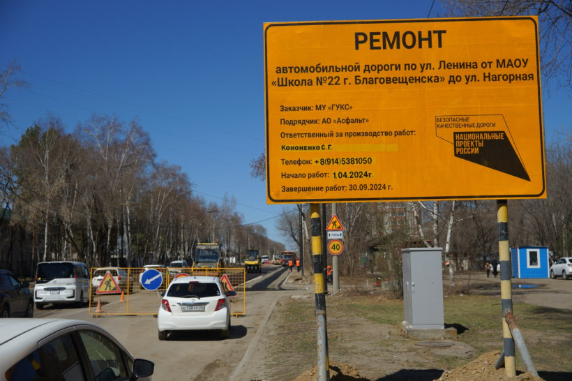 В Благовещенске участок улицы Ленина от Железнодорожной до Нагорной переодевается в асфальт. Ремонт здесь идёт в рамках нацпроекта «Безопасные качественные дороги».