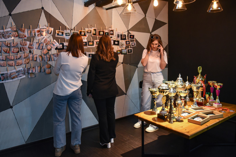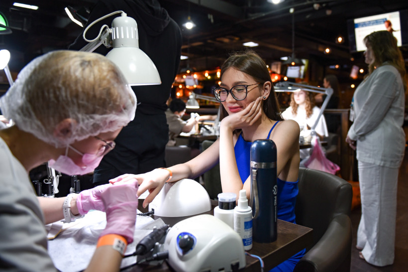— У нас всё свое, предоставляется только стол и два стула, я вынесла полкабинета, чтобы в чемпионате поучаствовать! Я занимаюсь нейл-дизайном с 2010 года, но в таком конкурсе в первый раз участвую. Страшно! Особенно когда ты профи. Лишь бы плохо не выступить, — поделилась впечатлениями участница Анастасия Алека. — Одно дело, когда ты сидишь в своем кабинете пилишь, а другое дело, когда ты здесь по регламенту, по времени, шаг влево, шаг вправо — расстрел! Нужно всё делать четко. Мне за два дня до этого сны снились. Один — как будто я здесь ничего не выиграла, второй — про то, как я не успела допилить. А потом во сне подумала: «Да ладно, в следующем году пойду!» А потом проснулась и подумала: «Во сне у меня всё самое страшное прошло, так что я готова к чемпионату!»